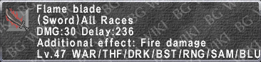 Description: | DMG:30 Delay:236 Additional effect: Fire damage | |||